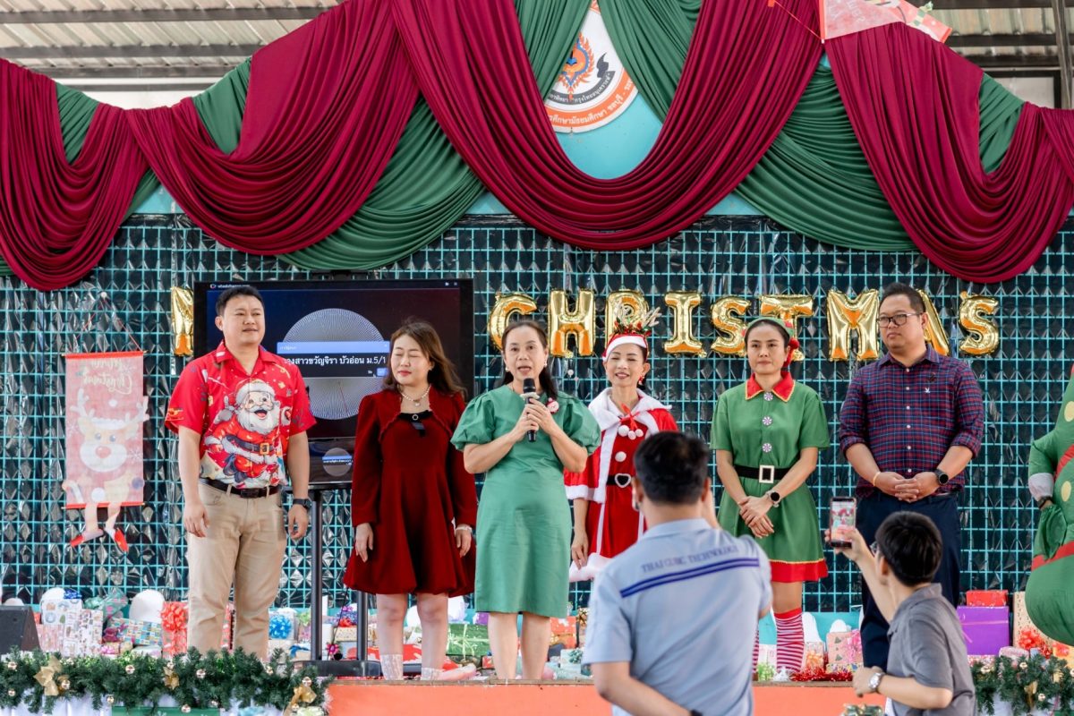 โรงเรียนทุ่งศุขลาพิทยา “กรุงไทยอนุเคราะห์” นำโดย ดร.สุรีย์พร ศรีวัฒนะ ผู้อำนวยการโรงเรียน พร้อมด้วยคณะรองผู้อำนวยการโรงเรียน และคณะครูกลุ่มสาระการเรียนรู้ภาษาต่างประเทศ ได้จัดกิจกรรมวันคริสต์มาสขึ้น เพื่อส่งเสริมการเรียนรู้ภาษาและวัฒนธรรมสากล พร้อมสร้างบรรยากาศแห่งความสุข ความสนุกสนาน และความสามัคคีให้แก่นักเรียน ภายในงานมีกิจกรรมสร้างสรรค์หลากหลาย สร้างรอยยิ้มและความประทับใจแก่ผู้เข้าร่วมกิจกรรมทุกคน ทั้งนี้ โรงเรียนได้รับเกียรติจากคุณฤดี บุญชอบ มาร่วมงานและนำขนมมาแจกจ่ายให้แก่นักเรียนทุกคน สร้างความสุขและความอบอุ่นตลอดกิจกรรม ![]()