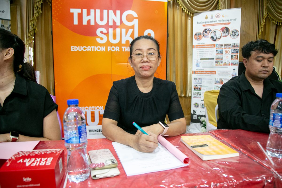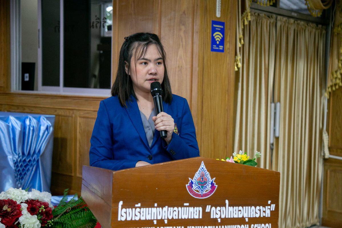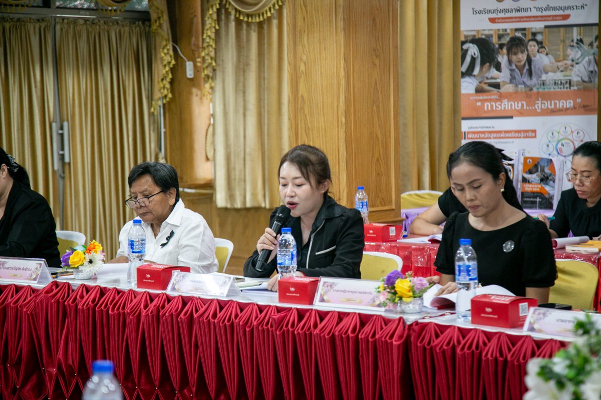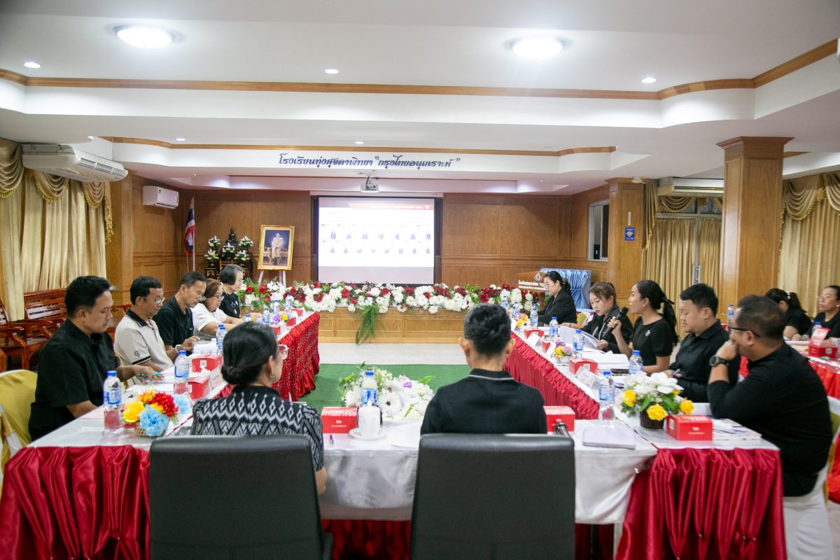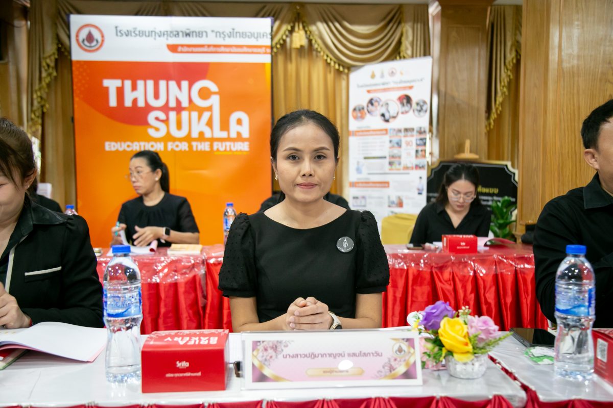 คุณฤดี บุญชอบ ประธานคณะกรรมการสถานศึกษาขั้นพื้นฐานโรงเรียนทุ่งศุขลาพิทยา “กรุงไทยอนุเคราะห์” เป็นประธานในการประชุมครั้งนี้