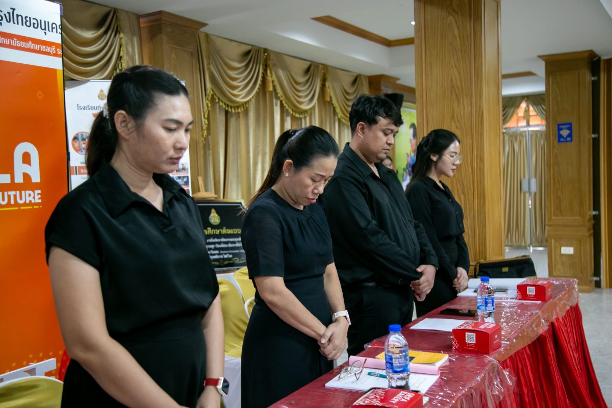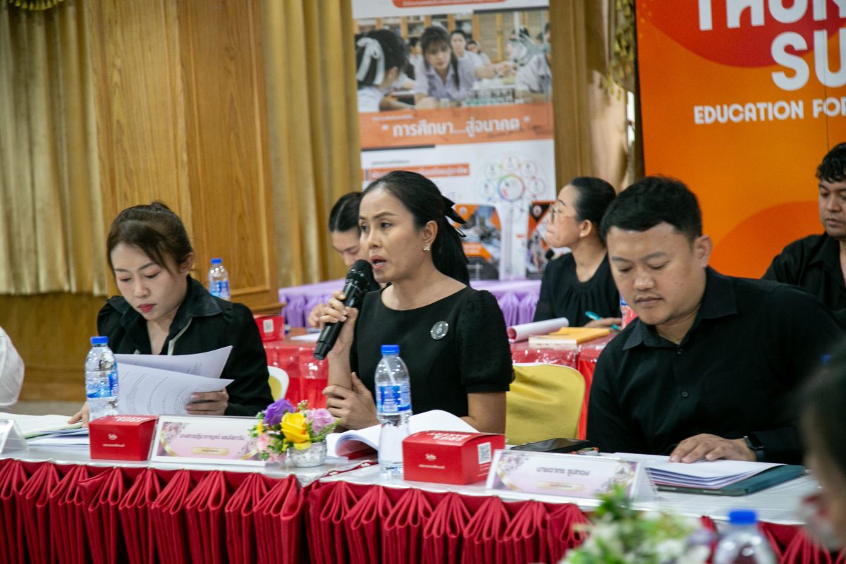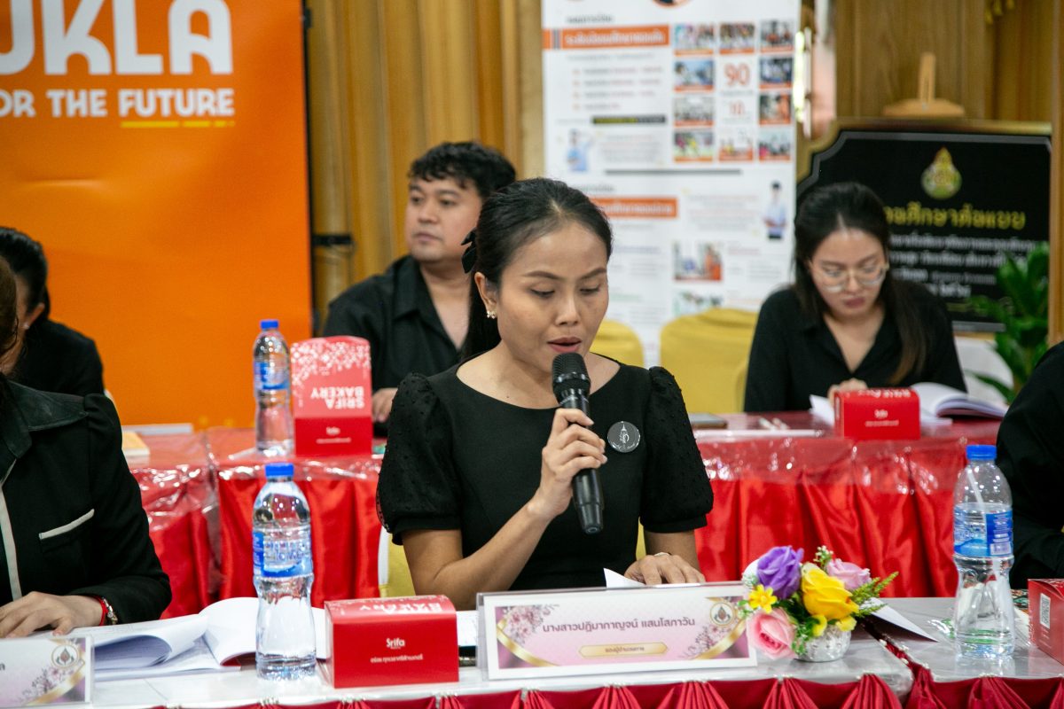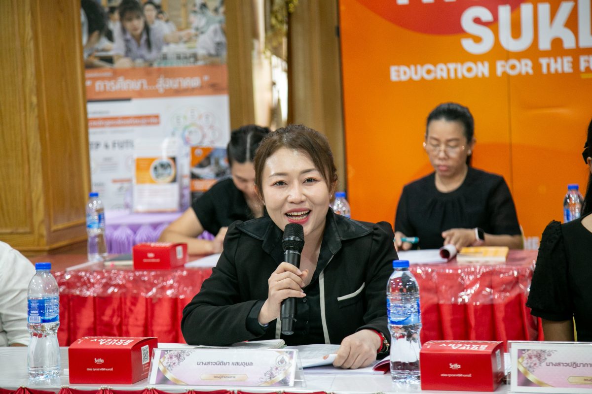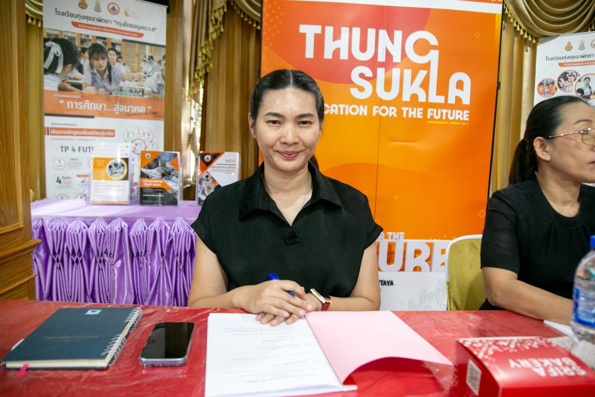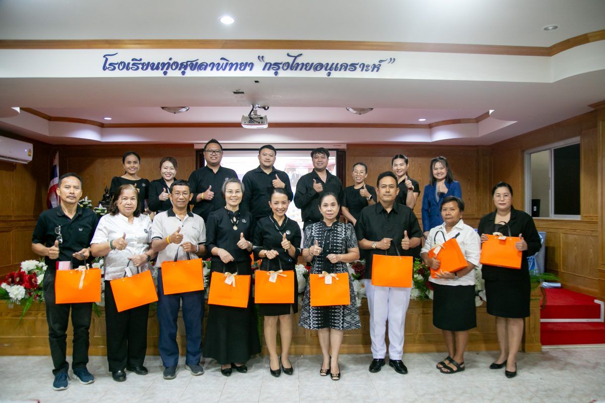 คุณฤดี บุญชอบ ประธานคณะกรรมการสถานศึกษาขั้นพื้นฐานโรงเรียนทุ่งศุขลาพิทยา “กรุงไทยอนุเคราะห์” เป็นประธานในการประชุมครั้งนี้