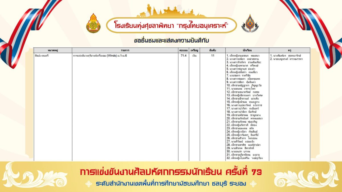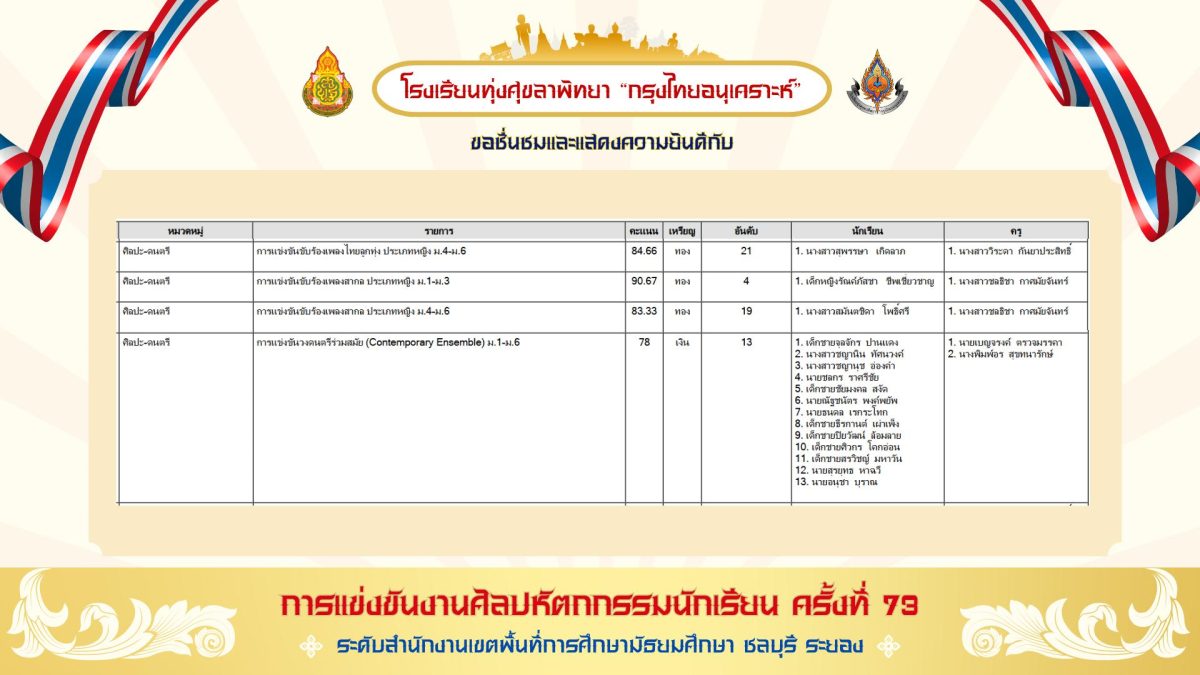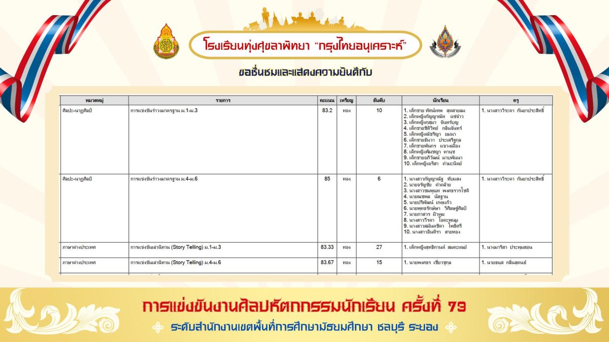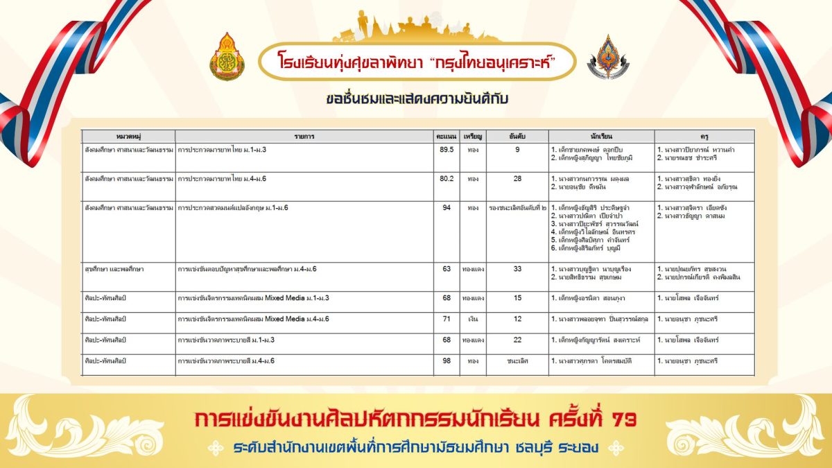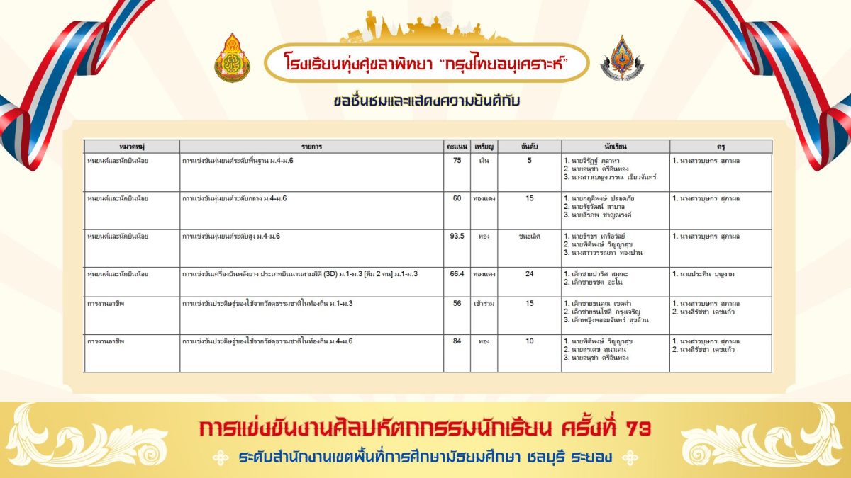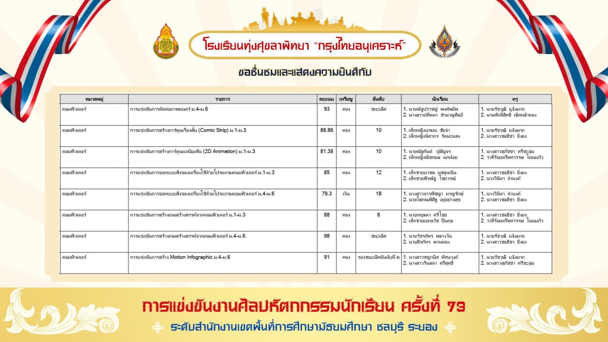 สรุปเหรียญรางวัล งานศิลปหัตถกรรมนักเรียน ครั้งที่ 73