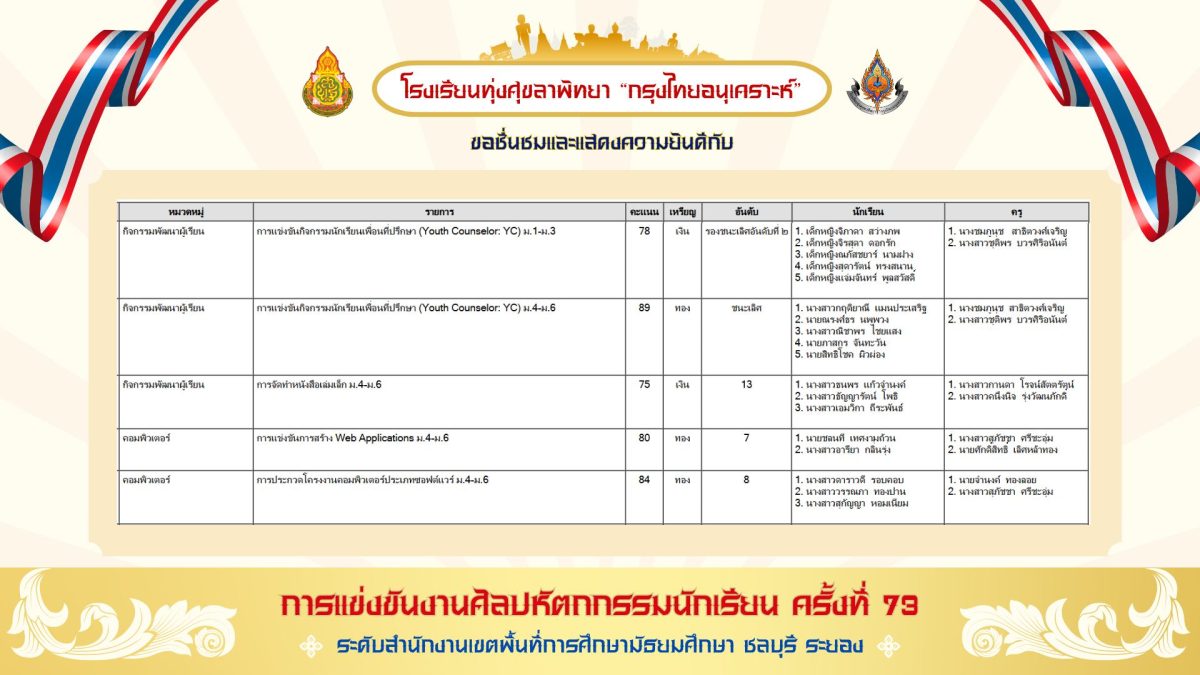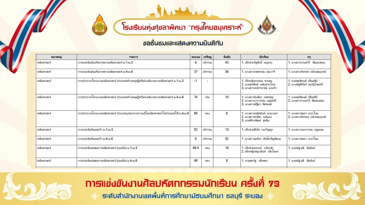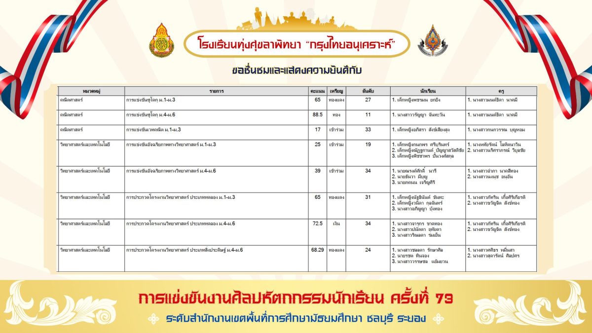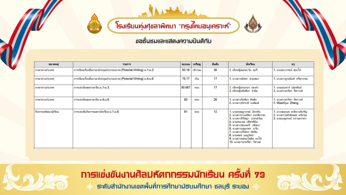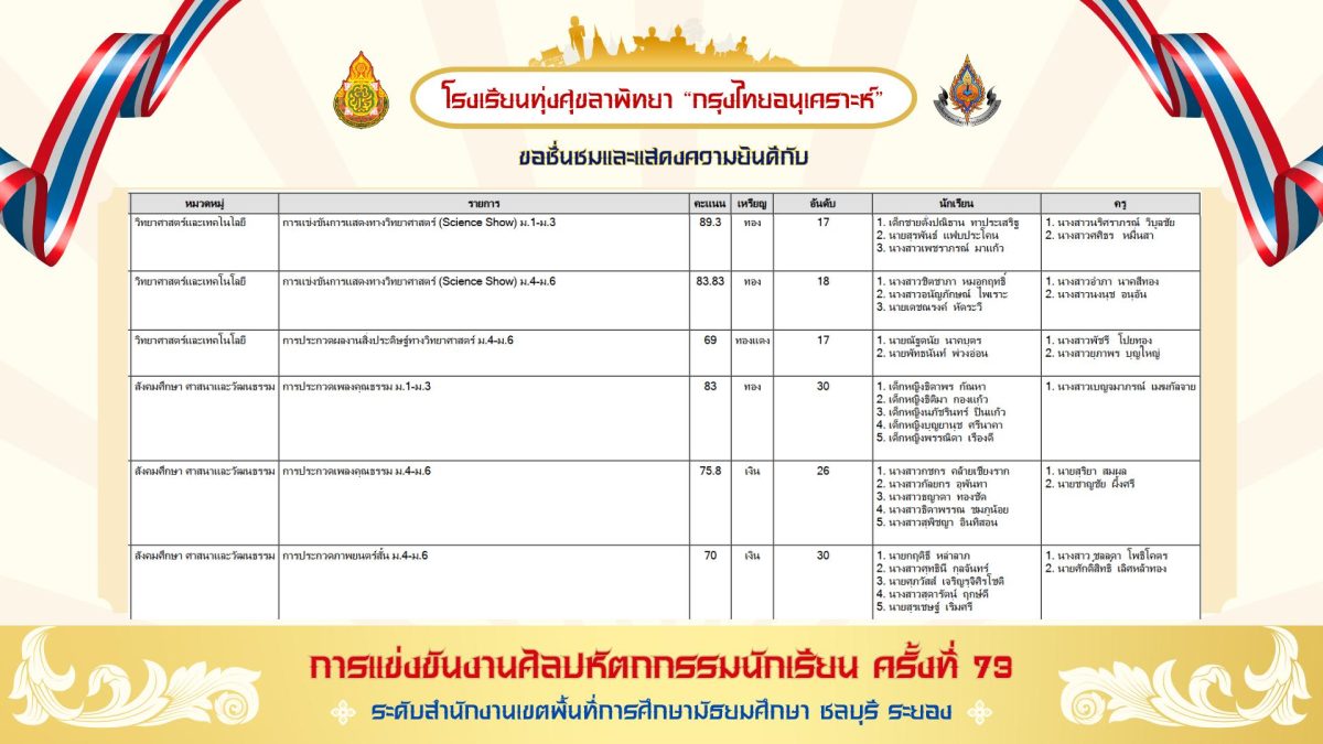 โดยการแข่งขันดังกล่าวเป็นการแข่งขันทางวิชาการของนักเรียนในโรงเรียนระดับมัธยมศึกษาทั้งภาครัฐและเอกชนทั้งหมดของจังหวัดชลบุรี และจังหวัดระยอง กว่า 75 โรงเรียน
