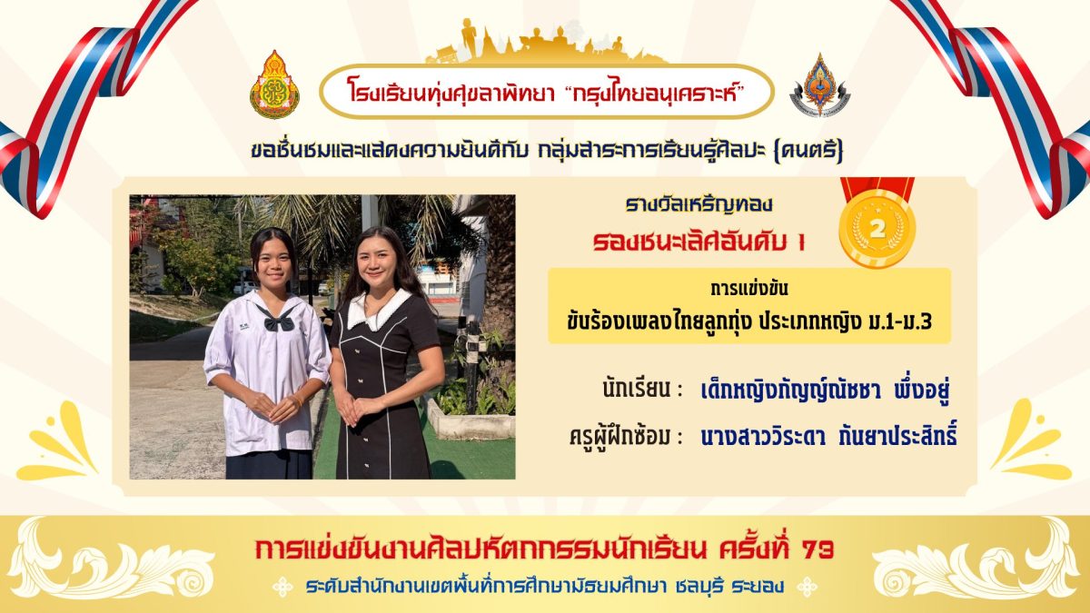 รางวัลรองชนะเลิศ อันดับ 1 จำนวน 1 รายการ