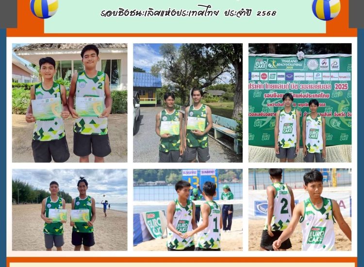 ระหว่างวันที่12-18 พฤศจิกายน 2568 นางสุรีย์พร ศรีวัฒนะ ผู้อำนวยการโรงเรียนทุ่งศุขลาพิทยา “กรุงไทยอนุเคราะห์“ ได้มอบหมายให้นายพยุงศักดิ์ ป้องแก้ว นำนักเรียนเข้าร่วมการเเข่งขันวอลเลย์บอลชายหาดยูโร่เค้ก รอบชิงชนะเลิศแห่งประเทศไทย ประจำปี 2568 ณ. สนามวอลเลย์บอลชายหาดแหลมสิงห์ อำเภอเเหลมสิงห์ จังหวัดจันทบุรี ได้รับรางวัล