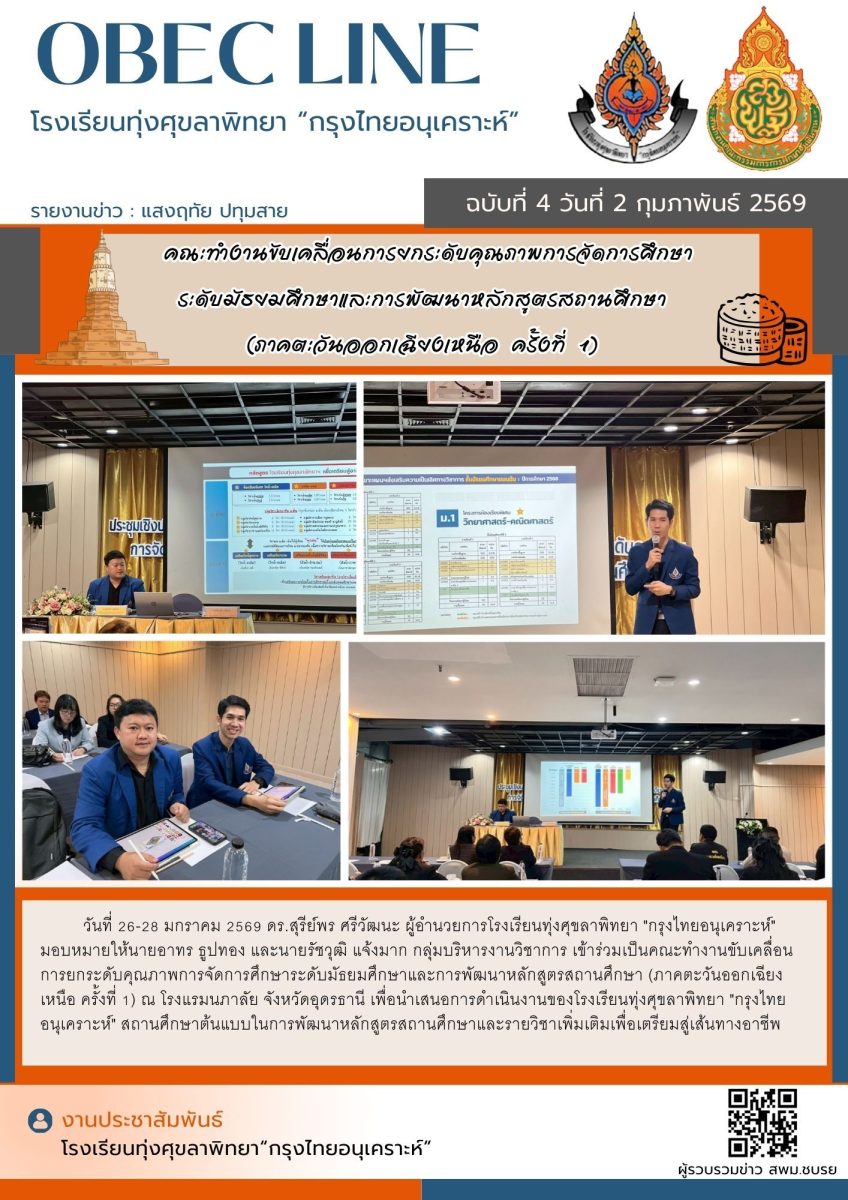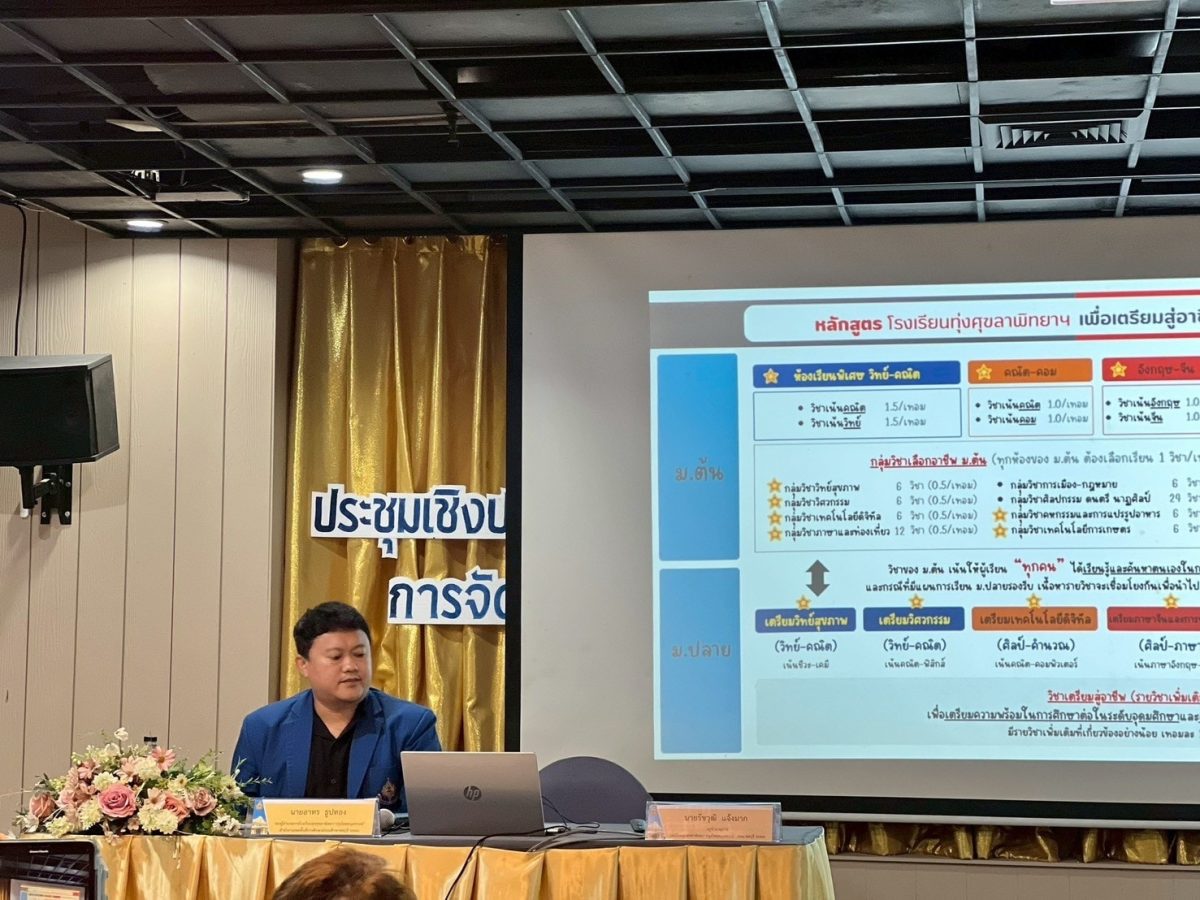 วันที่ 26-28 มกราคม 2569 ดร.สุรีย์พร ศรีวัฒนะ ผู้อำนวยการโรงเรียนทุ่งศุขลาพิทยา “กรุงไทยอนุเคราะห์” มอบหมายให้นายอาทร ธูปทอง และนายรัชวุฒิ แจ้งมาก กลุ่มบริหารงานวิชาการ เข้าร่วมเป็นคณะทำงานขับเคลื่อนการยกระดับคุณภาพการจัดการศึกษาระดับมัธยมศึกษาและการพัฒนาหลักสูตรสถานศึกษา (ภาคตะวันออกเฉียงเหนือ ครั้งที่ 1) ณ โรงแรมนภาลัย จังหวัดอุดรธานี เพื่อนำเสนอการดำเนินงานของโรงเรียนทุ่งศุขลาพิทยา “กรุงไทยอนุเคราะห์” สถานศึกษาต้นแบบในการพัฒนาหลักสูตรสถานศึกษาและรายวิชาเพิ่มเติมเพื่อเตรียมสู่เส้นทางอาชีพ