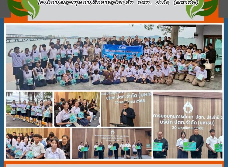 ดร.สุรีย์พร ศรีวัฒนะ ผู้อำนวยการโรงเรียนทุ่งศุขลาพิทยา “กรุงไทยอนุเคราะห์” พร้อมด้วยนางสาวชุติพร บวรศิริอนันต์ นำนักเรียนจำนวน 6 คน เข้าร่วมโครงการมอบทุนการศึกษาของบริษัท ปตท. จำกัด (มหาชน) ประจำปี พ.ศ.2568 ณ ศูนย์การประชุมและฝึกอบรมเขาบ่อยา คลังก๊าซเขาบ่อยา อำเภอศรีราชา จังหวัดชลบุรี