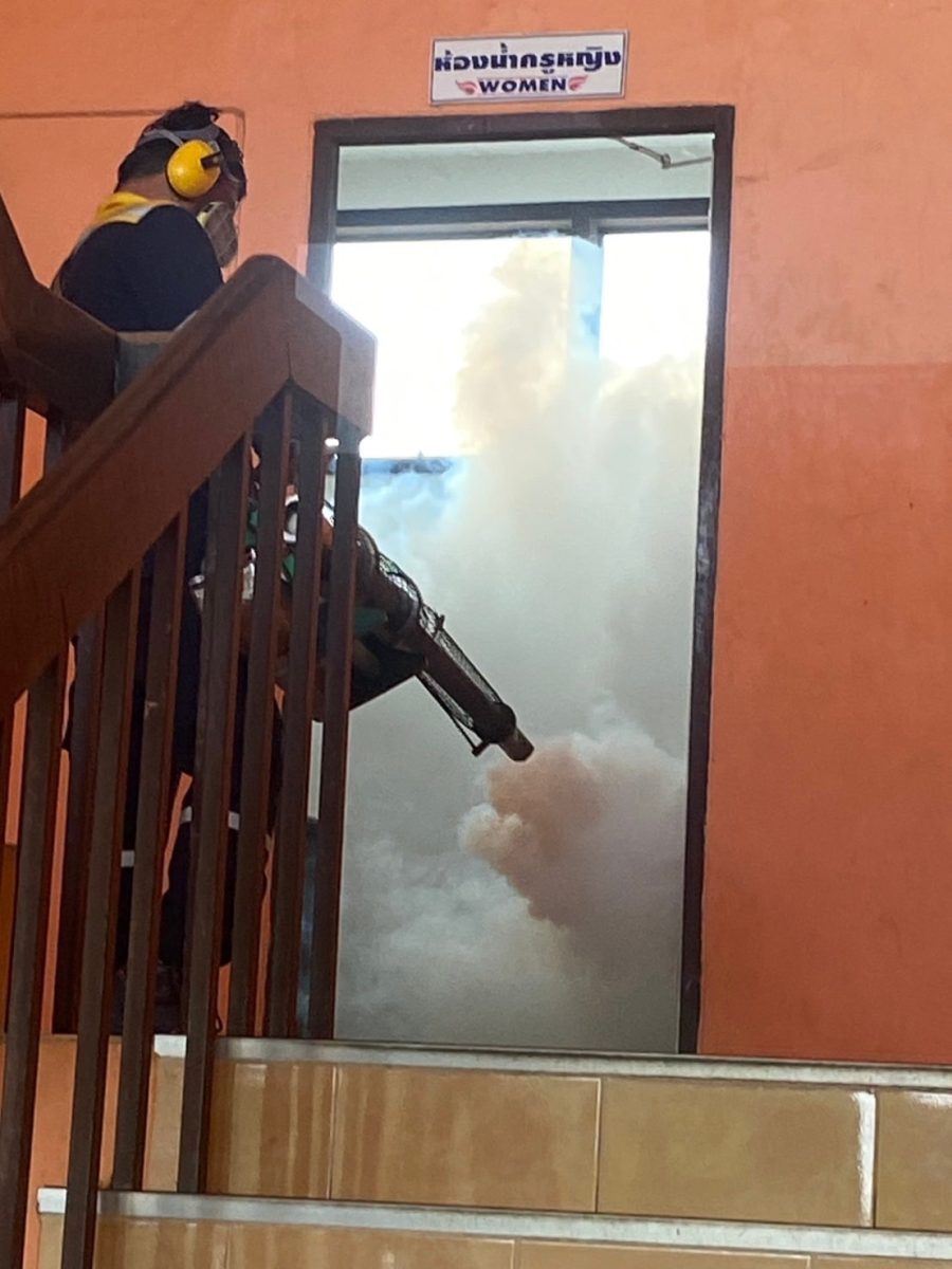 โรงเรียนทุ่งศุขลาพิทยา “กรุงไทยอนุเคราะห์” ได้รับความอนุเคราะห์จากเจ้าหน้าที่สาธารณสุข งานป้องกันและควบคุมโรคเทศบาลนครแหลมฉบัง ฉีดพ่นสารเคมีกำจัดยุง ![]()
